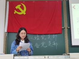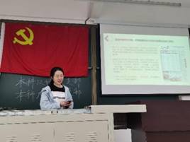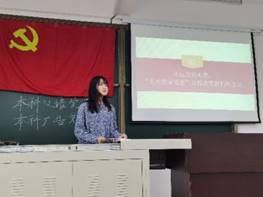 会上,本科汉语支部冯琪祺同志以党的三次重要会议为缩影,带领大家回顾了中国特色社会主义的发展历程。她依次讲述了中国共产党第一次全国代表大会的召开与红船精神、中国共产党第十一届中央委员会第三次全体会议重大发展转折点与改革开放精神、中国共产党第十九次全国代表大会丰富内涵与崭新征程,党的百年历程与举世成就历历在目。王沁岚同志联系生活经历,从成都的产业变化、城乡变化、生活变化、商贸变化和交通变化出发分别剖析了“创新、协调、绿色、开放、共享”五大发展理念的深刻内涵,内容生动有趣。徐榕利同志聚焦“精准扶贫”方略讲述脱贫攻坚故事。在阐明精准扶贫方略的提出过程并解释其基本内涵后,她分享了家乡江西瑞昌市妇幼保健院精准扶贫巧施策的成功案例。入户走访、落实健康扶贫的同时,瑞昌市卫健委积极开展就业扶贫、帮村共建、扶困济危等工作,办实事、做好事、解难事,实心实意为广大群众谋福祉,高质量打好脱贫攻坚战。