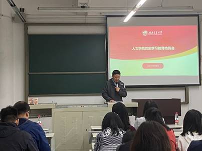 在犀浦校区8514教室召开了党史学习教育动员会议。会议深入学习贯彻习近平总书记在党史学习教育动员大会上的重要讲话精神,全面落实党中央关于党史学习教育的工作部署,动员全院上下严格对照《中共中央关于在全党开展党史学习教育的通知》和学校党委要求,教育引导全党同志学党史、悟思想、办实事、开新局。