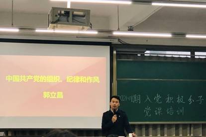 党委副书记郭立昌主讲“中国共产党的组织、纪律和作风”专题,师生做爱