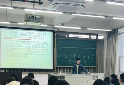 团委书记刘爽主讲“党的指导思想”专题。本次党课学习由本科广告党支部书记李盛兰主持。