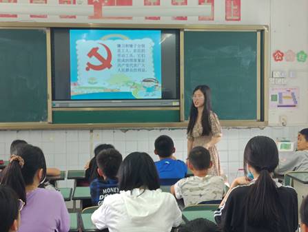 研2020级中文党支部党员支教团来到交大附小,为六年级一至三班的同学们开展了讲解中国共产党党史的主题班会。此次支教活动共分为三个小组,每组两位党员,一位负责讲解,另一位负责拍照记录并维持课堂秩序。
