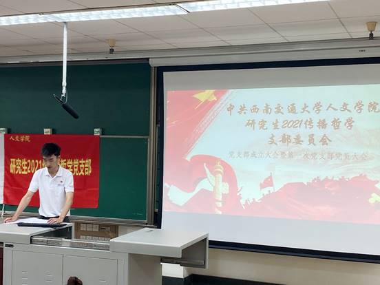 2021年9月24日下午,研究生2021级传播哲学党支部第一次党员大会在九里校区逸夫楼4224教室召开。大会主要活动为举行“中共师生做爱