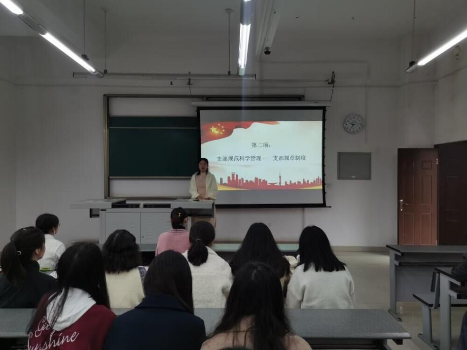 接下来,楚莹莹同志对支部的规章制度进行了讲解,内容包括支部活动和会议的出勤、党员的考核和积分、新闻稿撰写规范等方面。其中重点强调了党员积分管理考核制度,按照会议出勤、活动参与度、学习强国APP学习情况等方面分别制定积分细则。支部将根据党员的具体行为,对分值进行评定,这对于严格支部组织生活制度,提高党员素质,推动支部各项工作顺利开展具有重要意义。