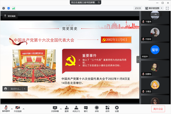 本科广告党支部线上开展了《中国共产党简史》专题读书班学习活动。本次活动由王春苹同志主持,支部全体成员参加。