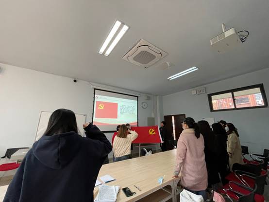 在会议的结尾,同志们一起重温了入党誓词,更加坚定了作为一名党员的责任与决心。在今后的工作和学习中,我们要无私奉献、勇争先锋,秉持交大精神,恪守交大校训, 绽放青春的奋斗底色。