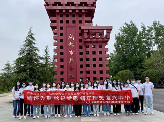 研究生2021级中文党支部21名党员同班内8名入党积极分子共赴成都市烈士陵园开展主题党日活动,本次活动的主题为“缅怀先烈,铭记党恩”,是支部参与创建“青春献礼二十大,强国有我新征程”校级示范性党支部特色活动的构成之一。活动全程在支委的组织下有序展开,支部成员用心投入,拍摄了以介绍成都党员英烈在不同时期的同一个信仰为主要内容的微党课。