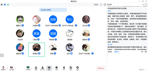2022年9月15日下午15:50,本科汉语党支部依托腾讯会议App组织开展线上学习活动。本次活动共有两项内容,第一项为认真学习观看《这就是中国》系列视频,第二项为视频观后感汇报。本次会议由冯琪祺同志主持,支部全体成员参与学习。