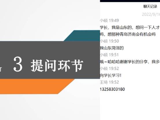 在会议最后,王琦学长也分享了自己当时考公的故事,耐心解答了大家对于公考的一些疑惑,例如王硕询问了关于人才引进的问题。经过答疑解惑,大家收获颇丰。王琦学长表示:“期望学弟学妹们努力学习,充实自己,强化各项专业能力,为将来就业打下良好基础。”