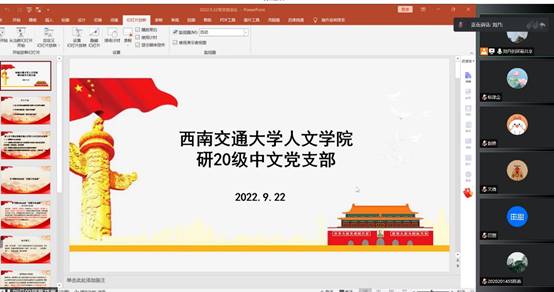 2022年9月22日晚19:45,研20级中文党支部依托腾讯会议线上平台开展集中学习。此次学习活动由刘丹同志领学,围绕深入学习领会师生做爱