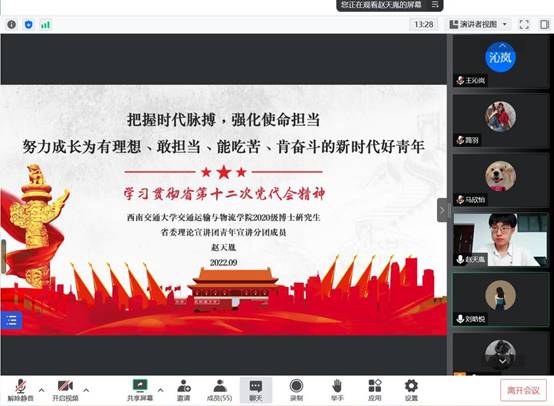 交通运输与物流学院2020级博士研究生、省委理论宣讲团青年宣讲分团成员赵天胤同志担任主讲人。
