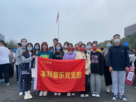本科音乐党支部17名成员来到现场,与其他来自各个学院的同学们齐聚一堂,共同观看升旗仪式。此次活动旨在以庄严而神圣的仪式感,进一步深化支部同志的爱党爱国爱社会之情。