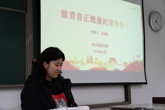 学生会主席团成员、中共预备党员吕东阳同学进行相关经验分享,大一、大二年级部分支部成员参加。