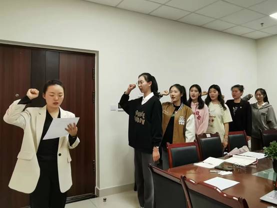 会议伊始,赵嘉怡同志清点到会人数,介绍本次大会的相关流程与内容。会议进入第一项议程,讨论接收李金垚、杨天鑫等发展对象为中共预备党员的问题。五名发展对象依次向大会进行简要汇报,入党介绍人依次作考察情况总结。经参会党员讨论后,采用无记名投票的方式逐个表决,一致同意接收五名同志成为中共预备党员。在支部书记卢琴老师的领誓下,在场全体同志列队持立正姿势,举右手、握实拳,面向中国共产党党旗庄严宣誓。