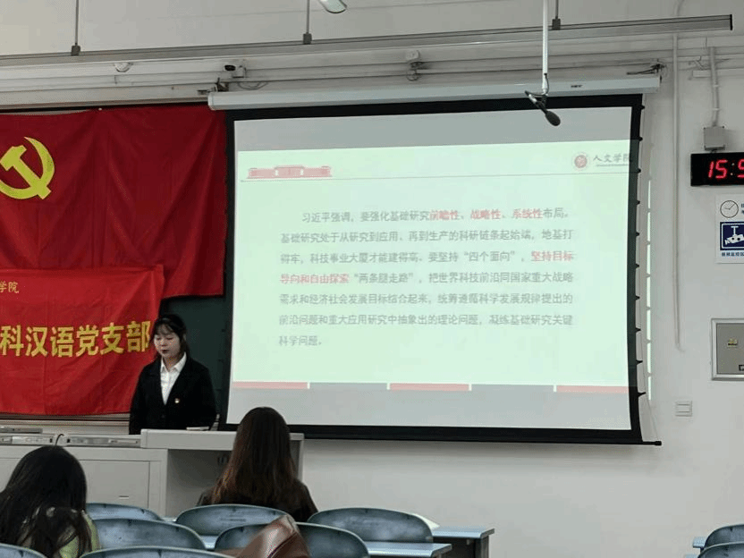 为加强本科汉语党支部全体成员的思想政治理论学习,提升全体成员的政治素养和思想水平,2023年10月12日下午3:50,本科汉语党支部在X2226教室集中学习习近平总书记在中共中央政治局第三次集体学习时的重要讲话精神以及习近平总书记在中共中央政治局第六次集体学习时的重要讲话精神。本次活动由朱思颖同志领学,本科汉语党支部全体成员参与学习。