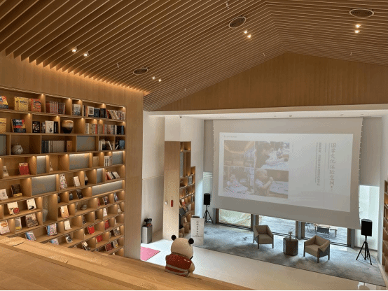 此外,打造特色文化IP,也是溪云书院拥抱文旅融合发展机遇的关键一招。在书院大厅的文创展柜上,一个个憨态可掬的大熊猫成为不同文创展品上的共同主角,吸引了传播支部师生一行的眼球。工作人员向大家介绍道:“这是书院的专属IP‘盖碗熊猫’,大家可以看到像这里的双面蜀绣、手工竹编以及其他许多文创产品都是围绕这一IP符号进行设计的。”