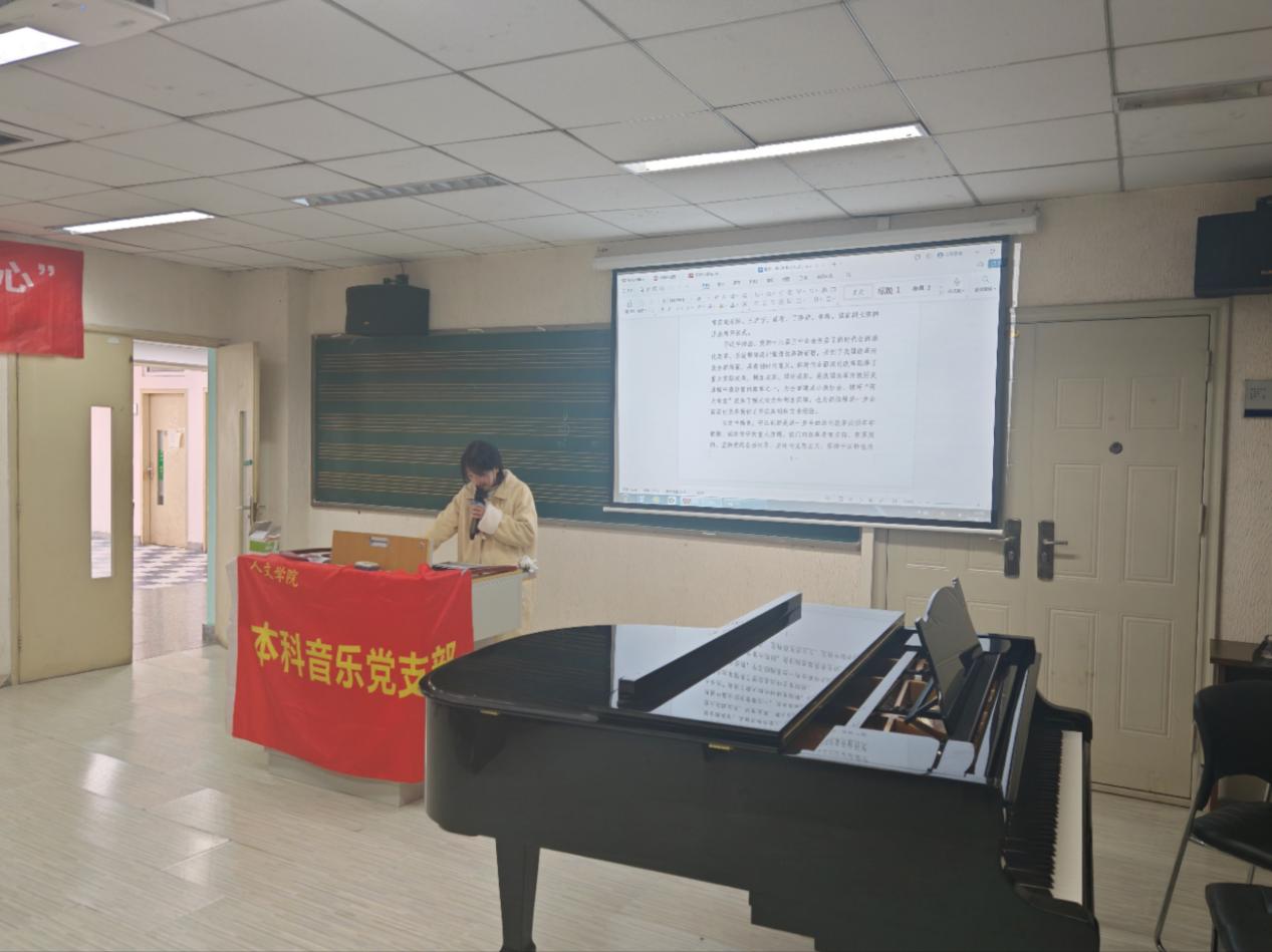 本科音乐党支部于2024年11月21日下午1:00,在音乐系音专一教室开展主题党日活动,会议由杜大升和伍成莹同学领学,支部全体成员参加学习。本次活动包括三个主题:一、 深入学习贯彻党的二十届三中全会精神,贯彻落实全国教育大会精神;二、 深入学习领会习近平文化思想;三、开展警示教育。