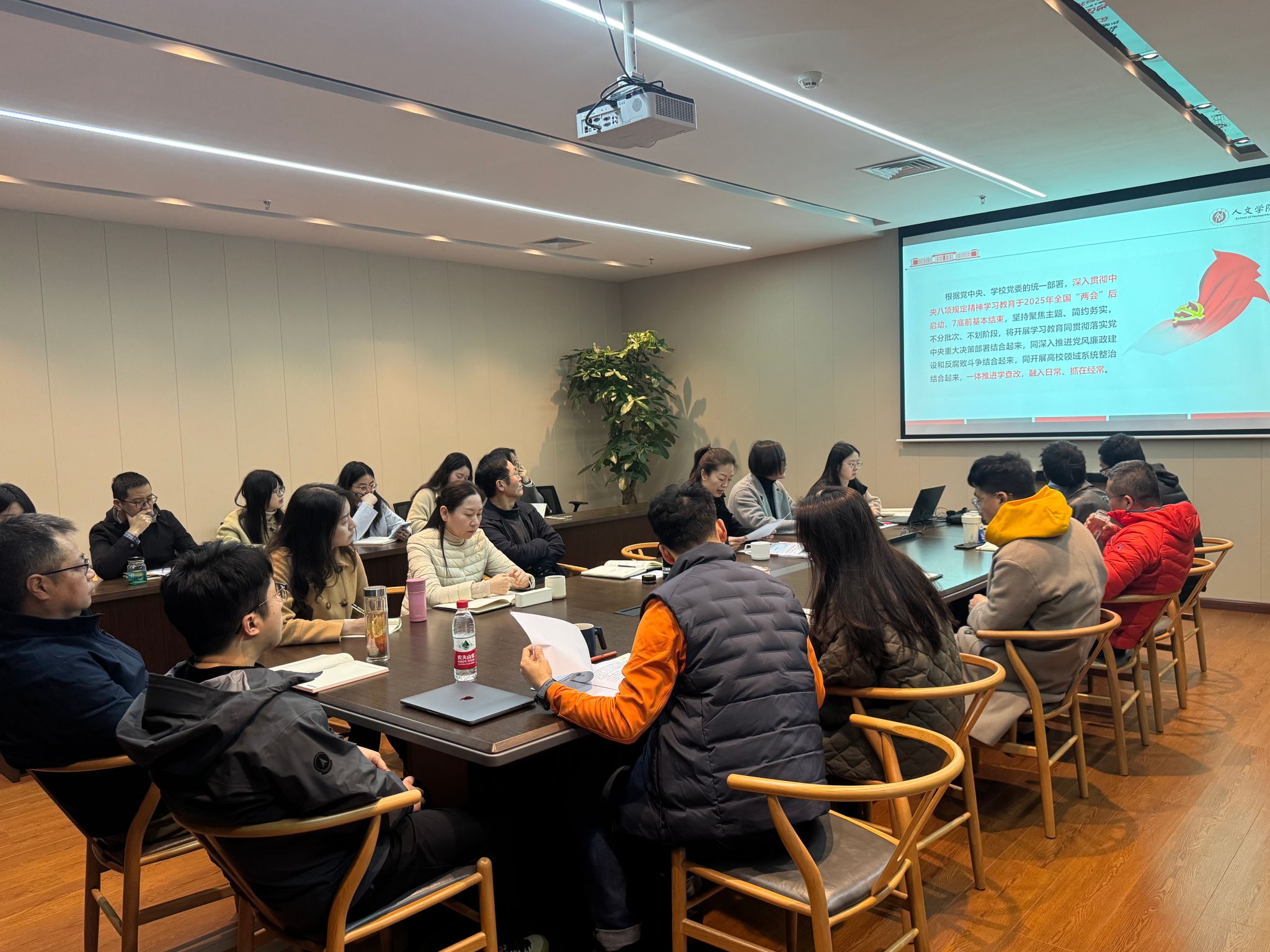 罗妍妍同志首先重点传达了学校深入贯彻中央八项规定精神学习教育启动部署会议精神,随后结合实际对学院开展好学习教育作出细致安排。会议要求,要准确把握目标任务,一体推进学查改,聚焦主题抓好抓实学习研讨、查摆问题、集中整治、开门教育。
