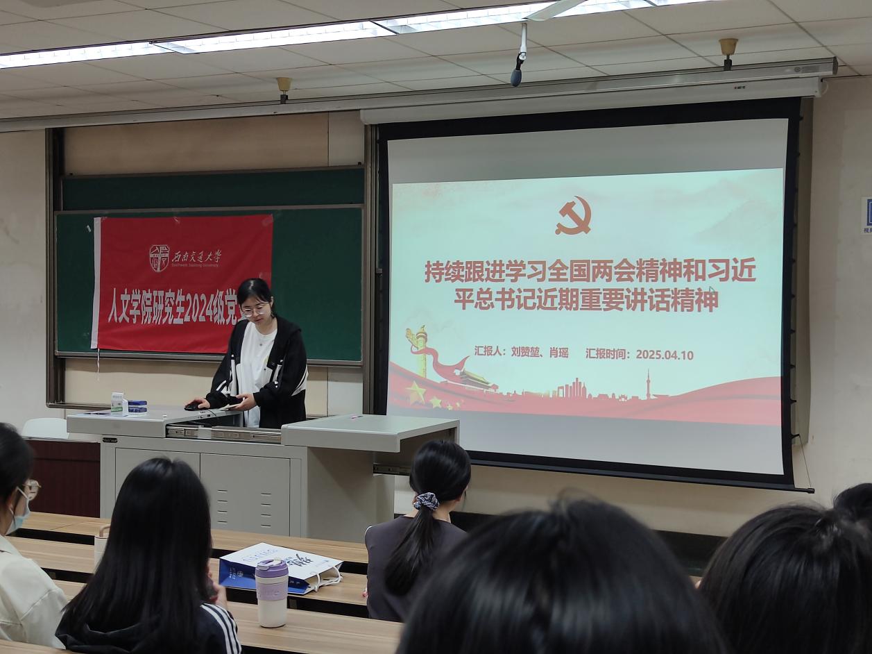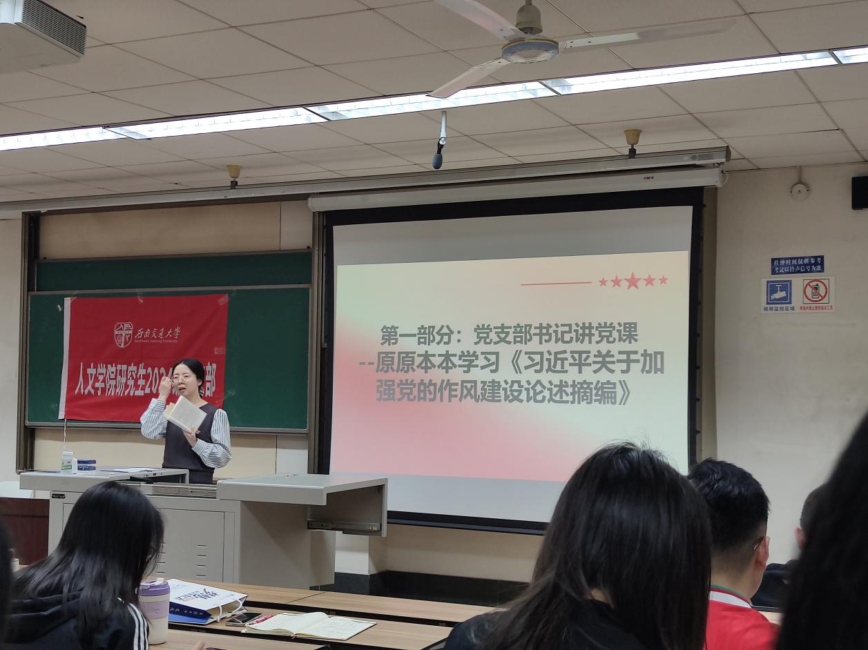 研2024级党支部在九里校区J4224教室开展4月主题党日活动。本次活动由郦炫竹同志主持,支部成员和入党积极分子参加学习。