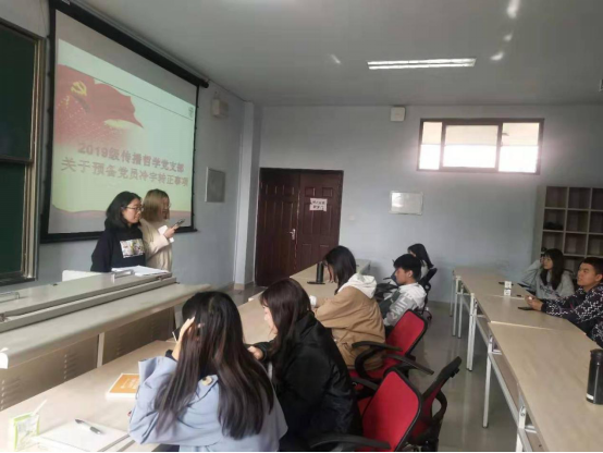 传播哲学党支部会议在X9238举行,会议由支部书记林茂同志主持。此次会议共两项议程:关于预备党员冷宇同志转正事宜;学习《关于新形势下党内政治生活的若干准则》。