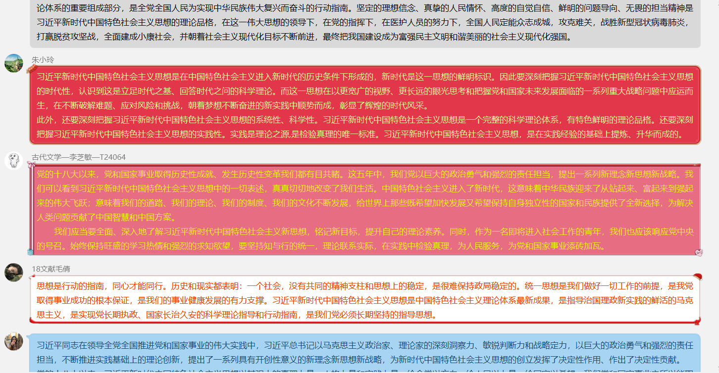 硕士2018级中文党支部在线上顺利开展了本学期第二次线上组织生活会,本次生活会以学生党员线上学习文件,学习PPT,支部成员轮流发言讨论等形式展开,由支部书记叶小维主持,硕士2018级中文党支部全体党员、预备党员参与。