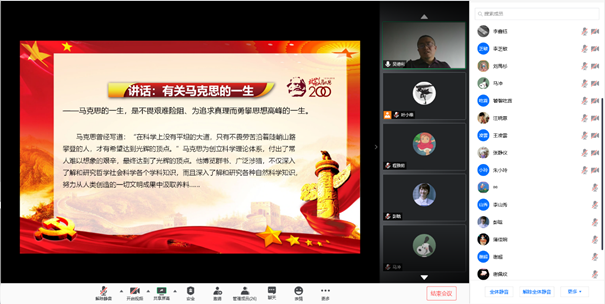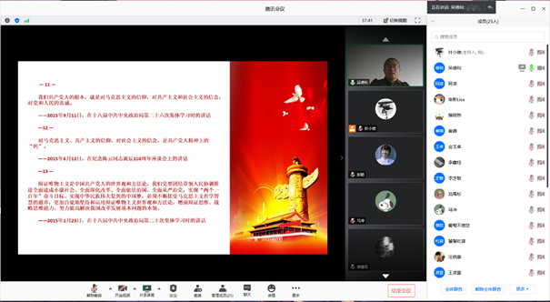 2020612日(星期五)下午14时,20172018级硕士中文党支部以腾讯会议为平台开展线上学习活动,本次学习专题为深入学习领会习近平总书记关于学习马克思主义经典的重要论述。