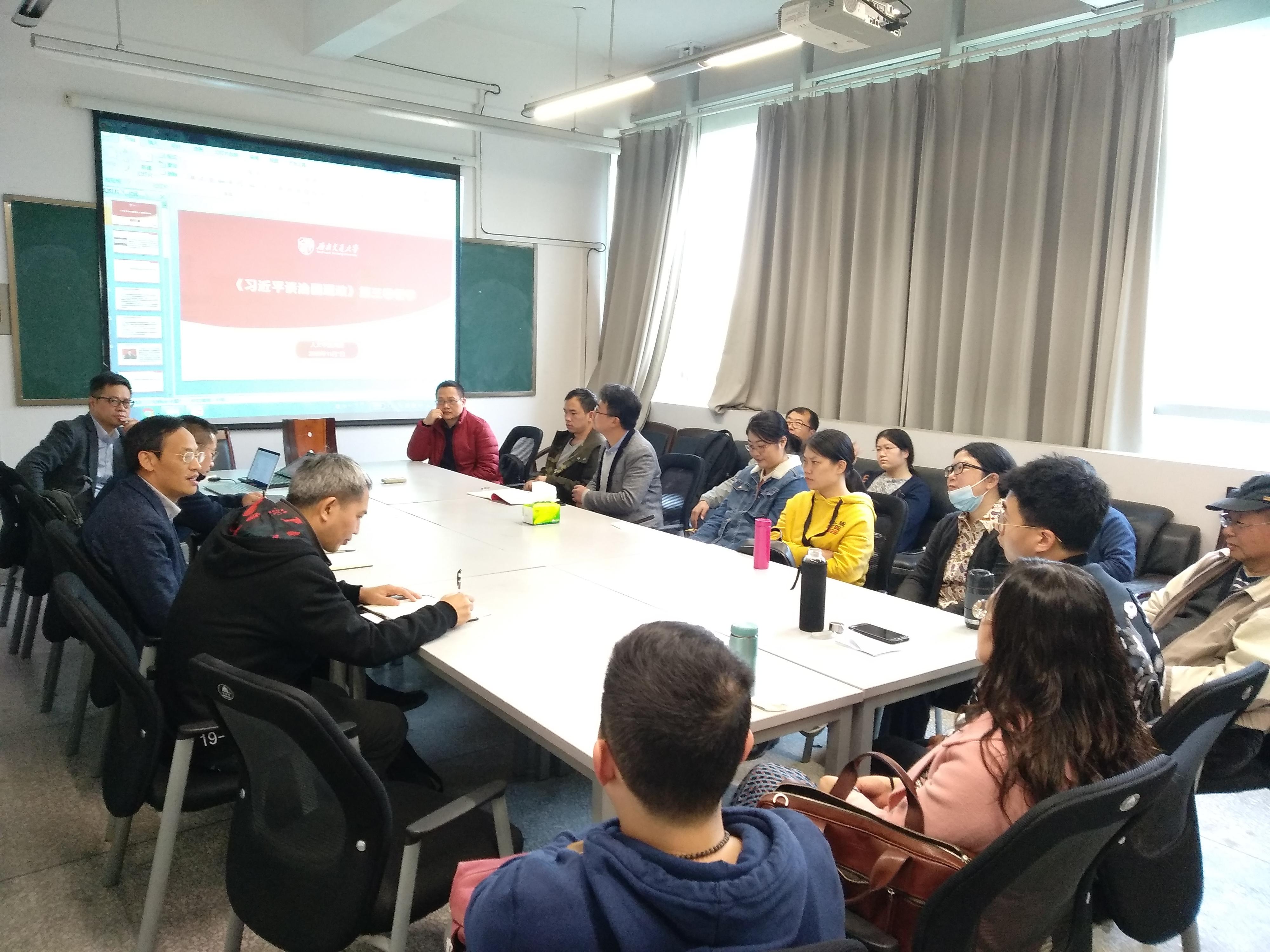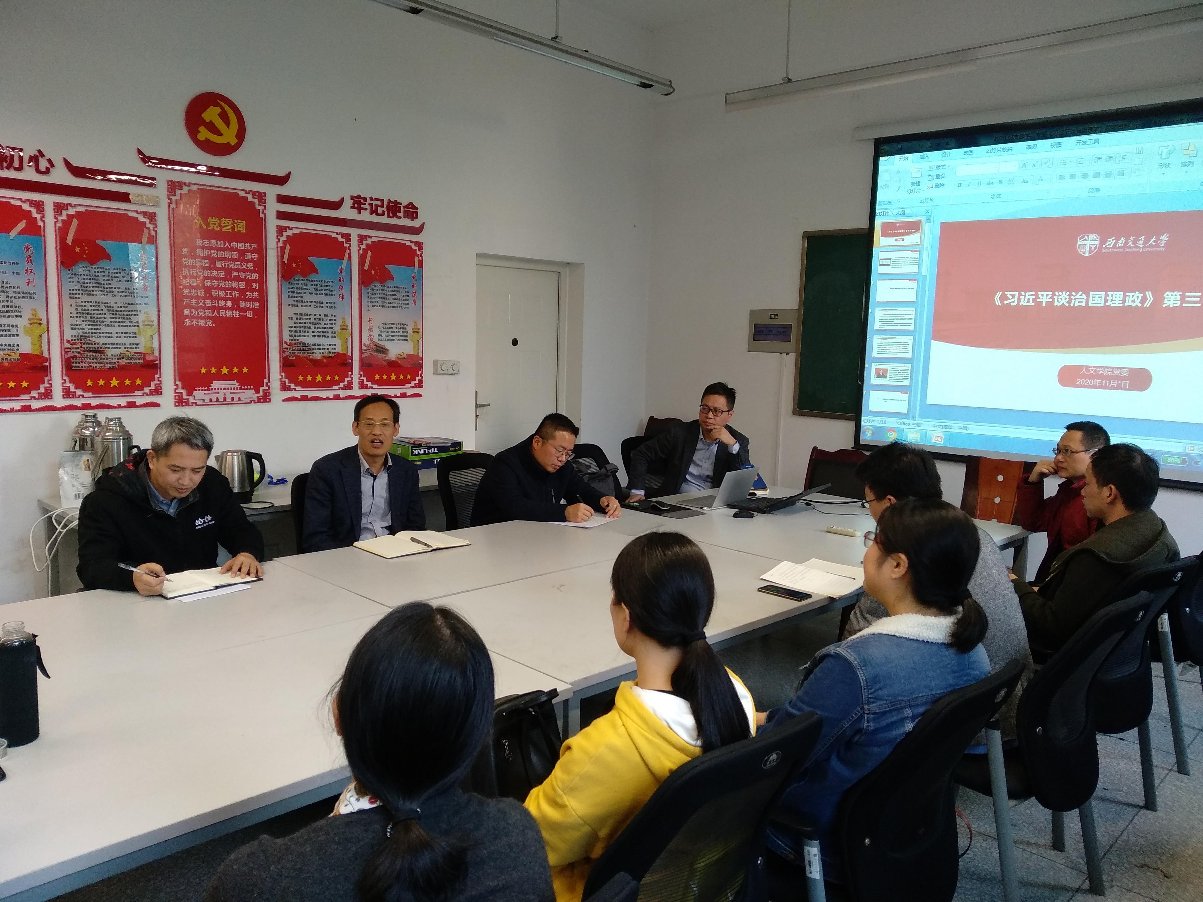 中文教师党支部开展调研。院长石磊同志、副院长沈如泉同志、学院教授委员会主任汪启明同志,以及中文教师党支部全体党员参会。会议由学院党委委员、中文教师党支部书记吴德利同志主持。