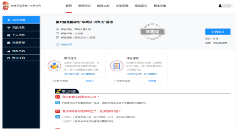 3、为推动学生积极参与“宪法卫士”行动计划,本活动纳入校团委“第二课堂”统一管理,学生按照要求完成在线学习、课后练习、成果检测等任务后,最终将按照1学时计入“第二课堂”成绩单。
