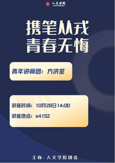 参军的荣耀是一种无法言喻的荣耀,是对爱国情怀和国防意识的认同和表达,对于年轻人来说,参军既是一种责任,也是一种荣誉。为鼓励更多大学生参军入伍,从2016年起教育部设立“退役大学生土兵专项硕士研究生招生计划”,专门招收退役大学生士兵攻读硕士研究生,方洪奎学长就是其中一员。本次宣讲会以“携笔从戎 青春无悔”为主题,将以个人故事的形式上升到爱国爱党、建功立业等方面进行讲述。