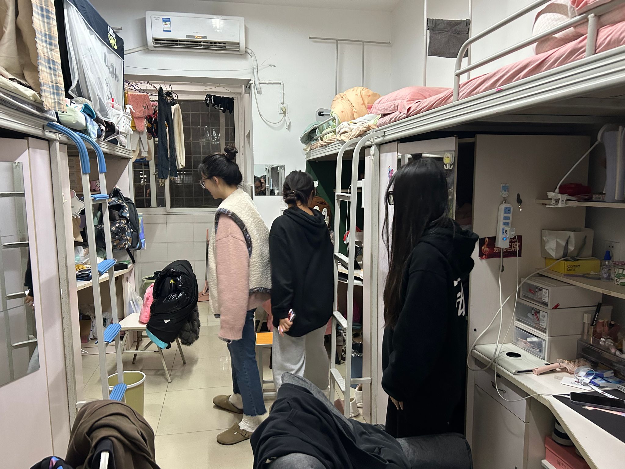 刘爽、刘晗悦、周桎宏、罗乔美四位老师前往犀浦校区本科生宿舍与学生谈心谈话。刘爽老师前往2020级本科生宿舍进行走访,关心慰问大家的近期状态,叮嘱学生及时做好时间规划。周桎宏老师与罗乔美老师前往2021级本科生以及2022级本科生宿舍,认真检查了宿舍的安全情况,并关心了同学们的身体健康。刘晗悦老师走访了2023级本科生宿舍,提醒学生注意添衣保暖,预防流感,叮嘱学生共同营造良好的生活、学习环境。