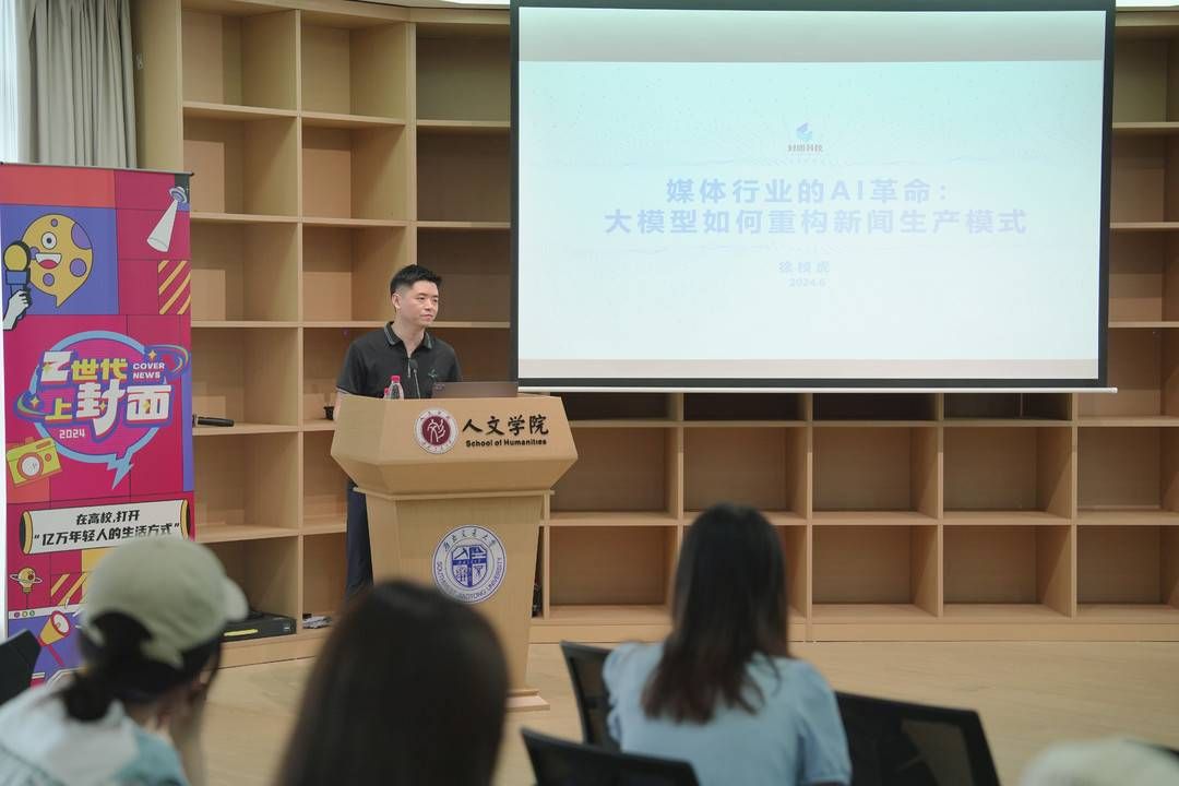 。封面科技副总经理、首席数据官徐桢虎开讲,为同学们带来了《媒体行业的AI革命:大模型如何重构新闻生产模式》的主题分享。同时,封面新闻与西南交大师生做爱