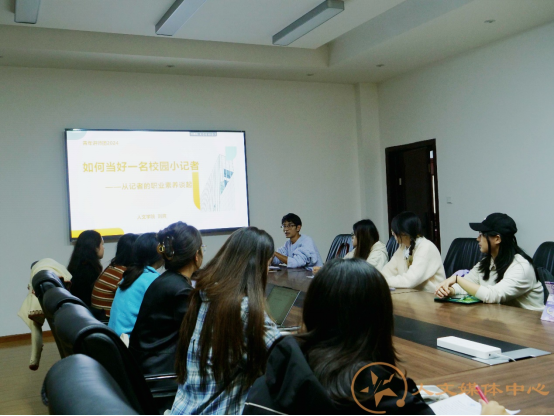 刘爽老师从记者的职业素养谈起,翔实为大家讲解了如何当好一名校园记者,从脑力、脚力、眼力和笔力四方面提升自身素养做好本学院的新闻宣传工作。刘爽老师用生动细致的新闻宣传工作案例,深入浅出的为大家讲解了新闻媒体工作者以及宣传工作的重要性,最后,他还分享了怎样从题材、文字、图片、宣传海报等七个维度做好新闻宣传工作。