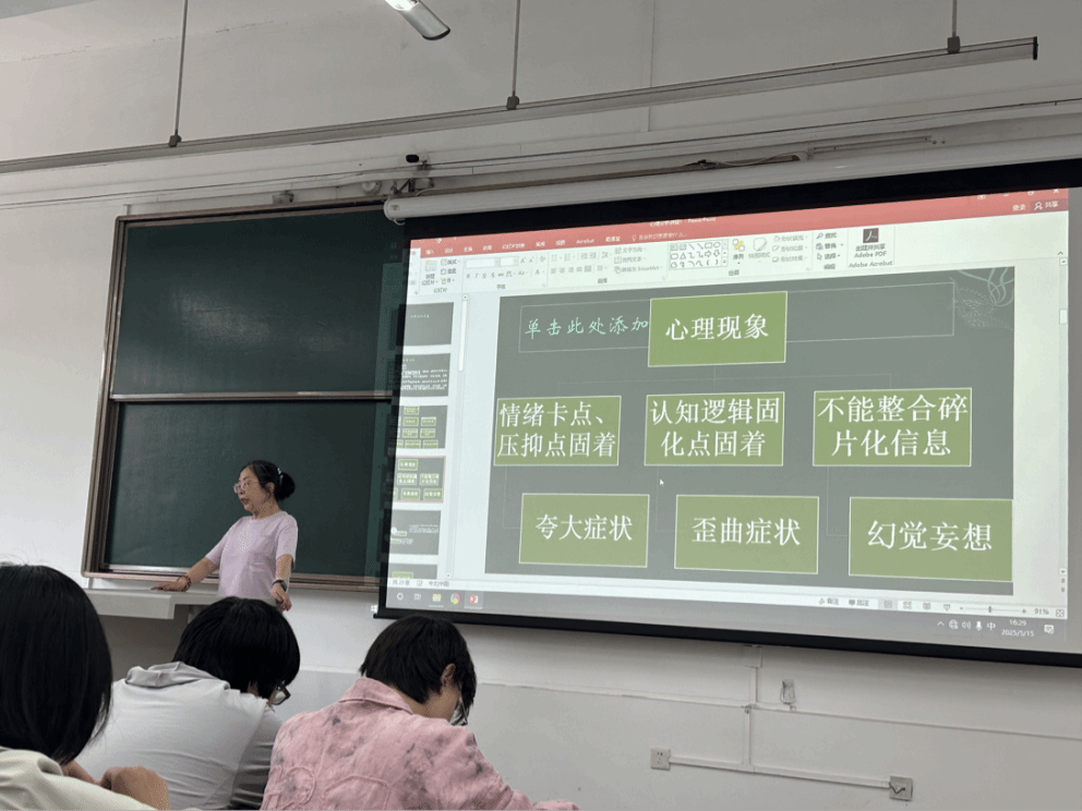 在讲座尾声,曾老师从心理病理学的视角出发,简要讲解了幻觉、妄想和夸大三种症状的核心特征,并强调:虽然这些术语多见于临床心理学,但在正常人的生活中,也可能出现轻度的“类幻觉”或“类妄想”状态。 她呼吁大家学会将碎片化的经验整合起来,重建一个多元、包容而真实的自我图景。