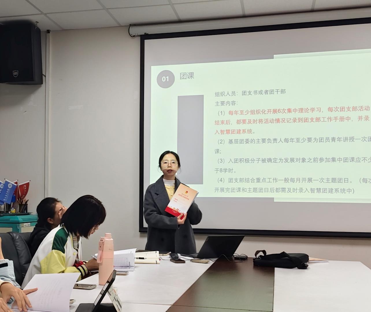 本次培训内容紧扣新生团支书的实际工作需求,系统讲解了团支部工作规范、团组织关系转接、推优入党工作流程以及智慧团建系统操作等四大核心内容,为新生团支书提供了清晰、实用的工作指引。文璐老师重点讲解了“三会两制一课”制度,帮助与会人员理清工作思路、把握工作重点、掌握工作方法。