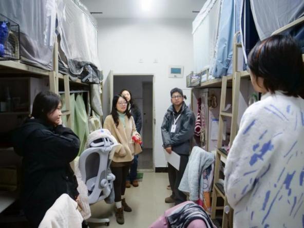 走访期间,陈曦轶副书记与同学们亲切交流,细致关心大家的生活适应情况、学业进展与未来规划,对于同学们在成长发展中遇到的困惑给予了针对性指导。走访中,老师们还强调了宿舍安全管理要求,提醒同学们遵守用电安全规范,保持宿舍环境整洁有序,养成规律作息与健康向上的生活习惯。