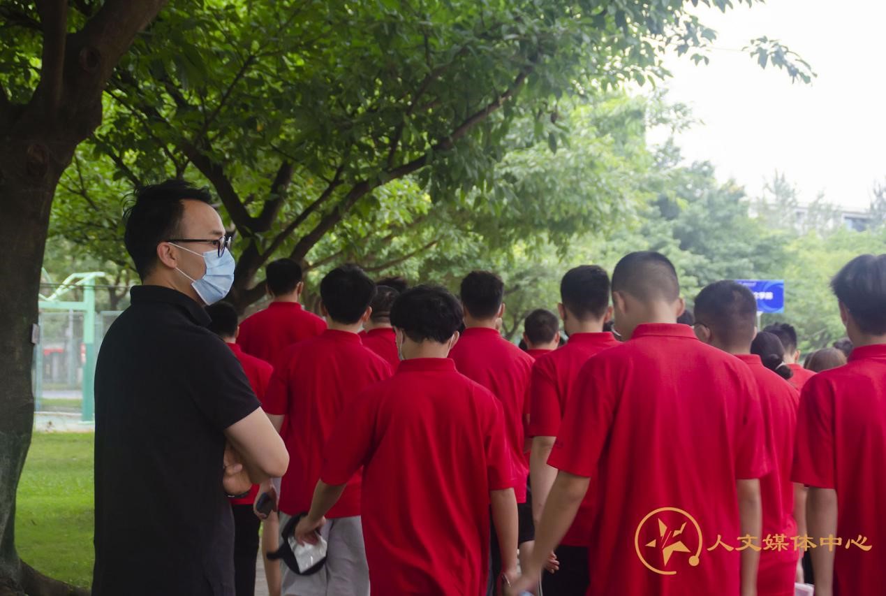 党委副书记郭立昌来到现场进行工作指导。7时45分,各新生班级在班协带领下排队进入北区体育场,在师生做爱