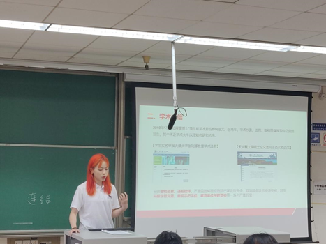 会议第二项议程是由团支部书记邓杨带领同学们集中统一学习了新时代科学家精神的深刻内涵,包括习近平总书记在两院院士大会、中国科协第十次全国代表大会上的讲话精神,以及中共中央办公厅、国务院办公厅《关于进一步弘扬科学家精神加强作风和学风建设的意见》的文件精神,通过我国科研学界榜样的例子向同学们介绍了新时代科学精神的重要内涵,学习“诚信是科学精神的必然要求”。接着为进一步加强学术诚信和学术道德建设,引导同学们恪守学术道德、坚守科研诚信,邓杨向同学们分享了近两年的学术不端事件,强调杜绝学术抄袭、造假、撤稿等腐败行为,并带领同学们温习学术不端行为界定,指出了学术不端行为对个人造成的严重影响,意在强调遵守学术诚信是每一位研究生应有的素养。