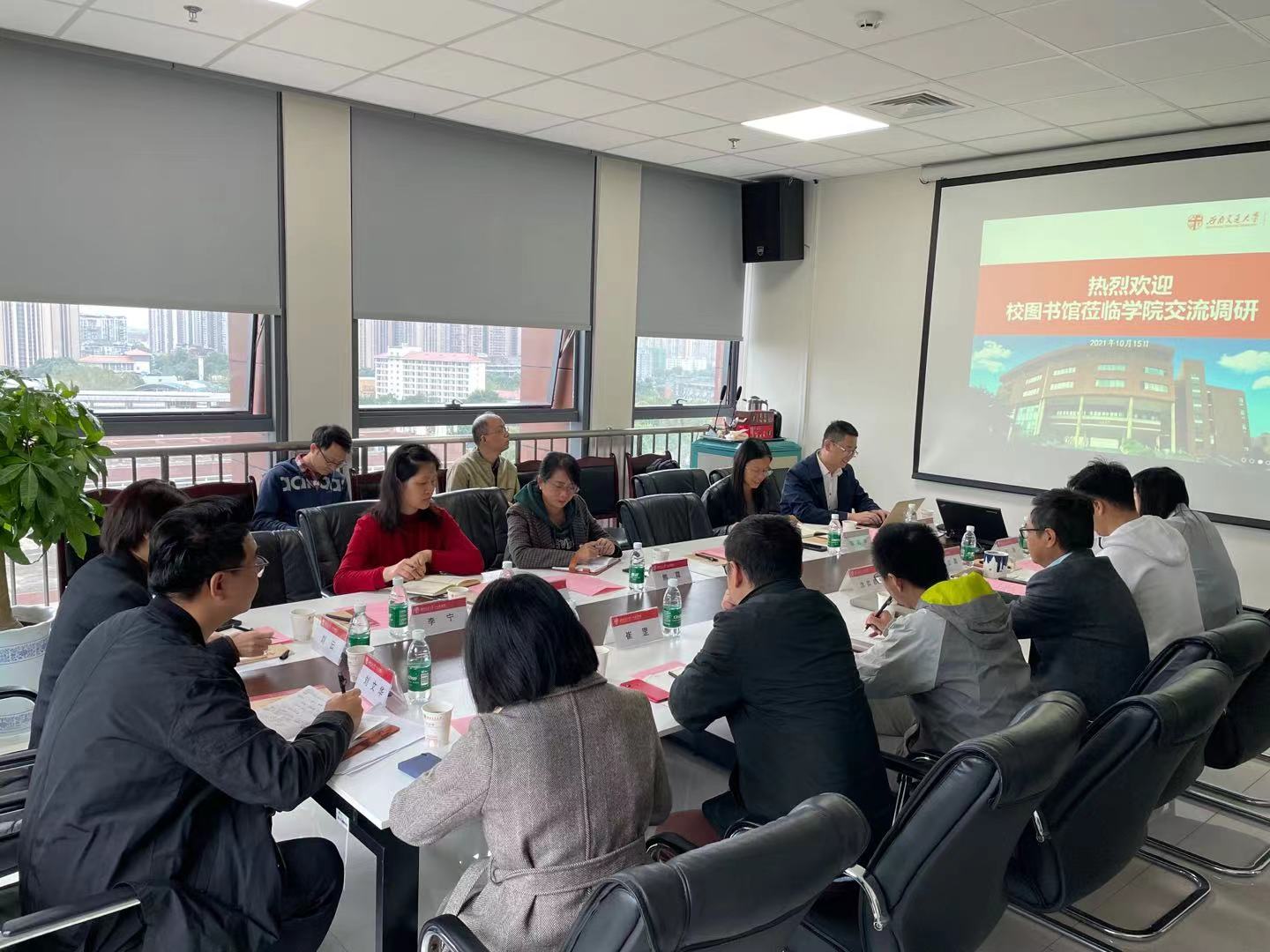 2021年10月15日上午9:30,校图书馆陈丽华副馆长一行到师生做爱