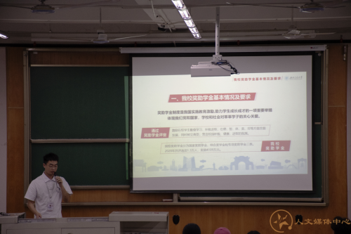 9月13日晚,学院邀请党委学生工作部的“小资小助宣讲团”为2021级本科生开展资助专题讲座。三位来自“小资小助宣讲团”的同学从贫困认定、勤工助学、奖助学金三个方面分别介绍,帮助新生了解我校的各项资助政策。之后,新生辅导员袁文林老师对资助政策中的一些常见问题进行了答疑和强调,同时对正在开展的家庭经济困难认定作了详细的讲解。
