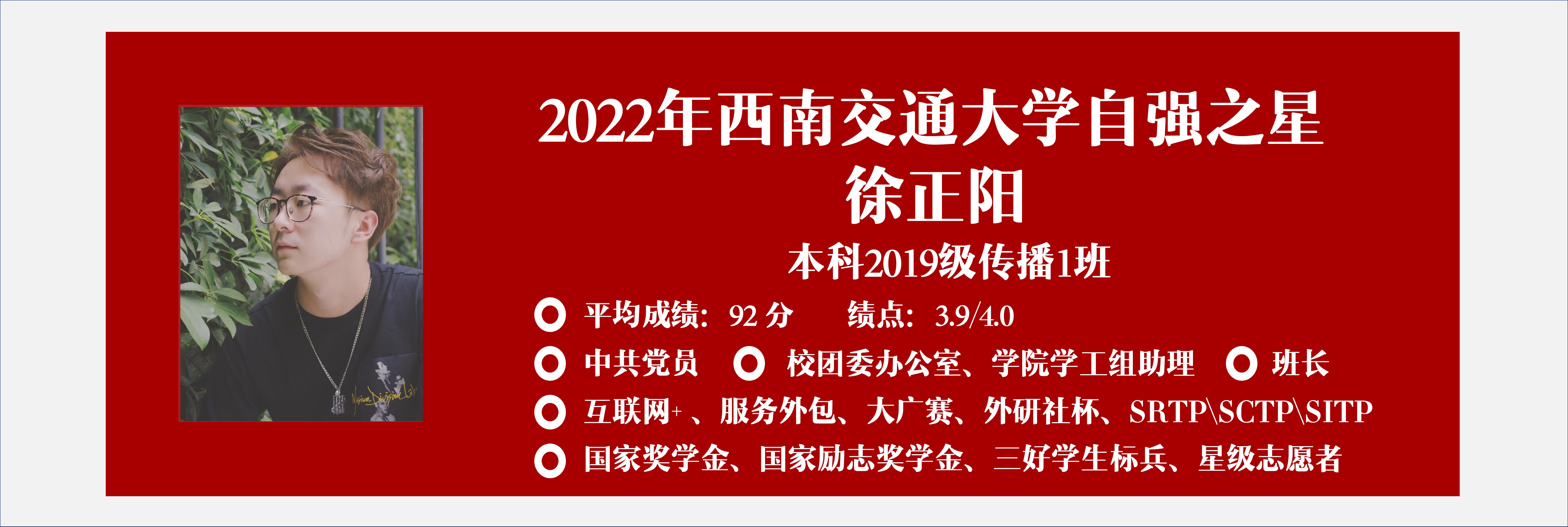 站在“自强之星”答辩台上的徐正阳用这句话作为结尾:“这一路上不仅有国家奖、助学金的帮扶、学校的关怀,更有交大传播系里我最敬爱的老师们和最亲爱的同伴们的指引和陪伴!”