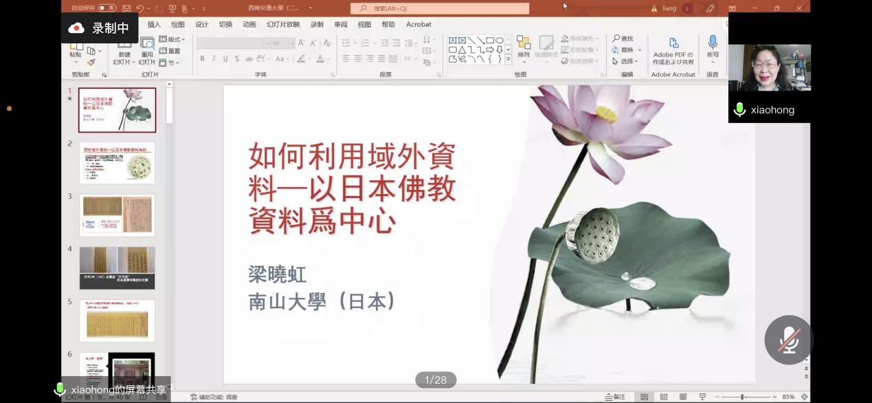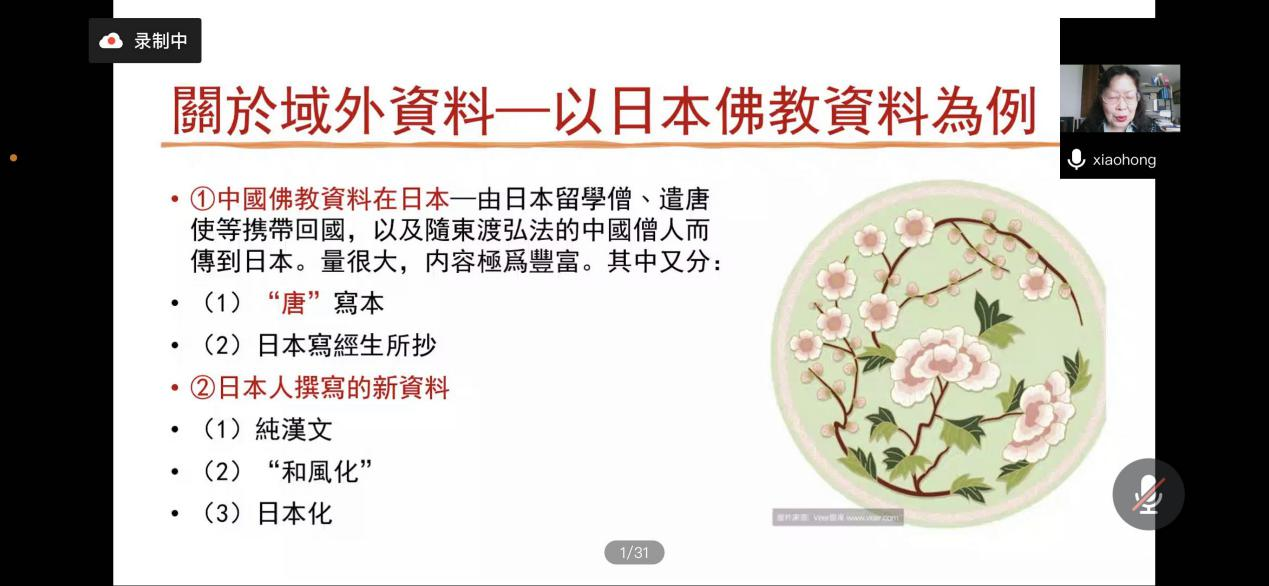 梁晓虹教授就“如何利用域外资料”展开详细的介绍与论述。梁教授在日本生活了十余年,有着丰富的查找域外资料的经验。此次分享,梁教授将理论与实际相结合,以日本佛教资料为例,深入介绍了异域资料的流传、发展与查询。