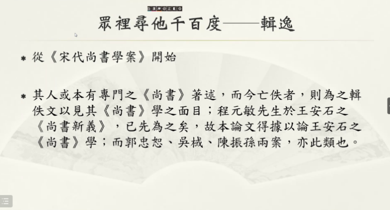 2022514日上午10点,由高雄师范大学教授蔡根祥主讲的以“‘辨伪’与‘辑逸’随谈(二)”为主题的学术讲座在线上正式展开,参与讲座的师生和专家学者多达200余人。
