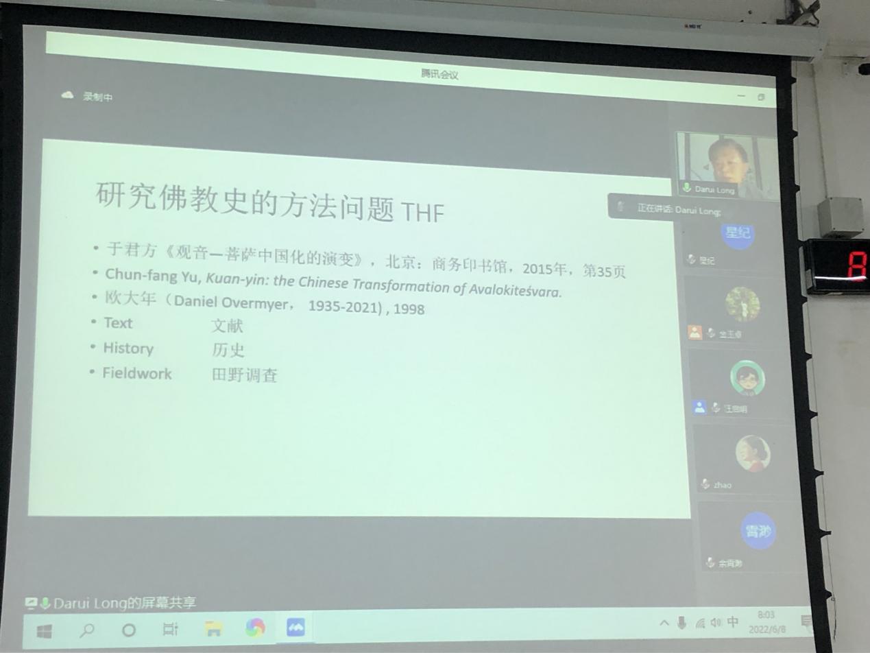 最后,龙教授谈到自己对《永乐北臧》的研究,从最开始对普林斯顿大学东亚图书馆保存的《永乐北藏》的研究,到对其他单位收藏的《永乐北藏》进行调查,龙教授走访了中国、美国与波兰的20余家图书馆、博物馆和寺院,拍摄了数万张藏经的照片,填补了相关领域的空缺,为听众提供了宝贵的调查经验,与会师生受益匪浅。