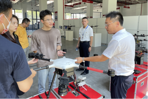 随后,团队来到了江苏无国界航空发展有限公司,跟随公司负责人参观了无国界青少年航空研学基地以及七大实训中心:飞行训练中心、航空服务培训中心、机务维修实训中心等。在江苏飞服中心,实践队深入了解了无人机行业,观看了镇江新区公安治安防控体系“空天战队”的宣传视频。在一系列参观中了解到现代无人机的多样化应用领域——打击非法种植、提高禁渔水平、开展防疫宣传、空中巡逻防控等。近年来我国航空业发展迅猛,要抓住发展机遇,校企双方都应该致力于航空产教融合,打造共享性航空人才培养平台。