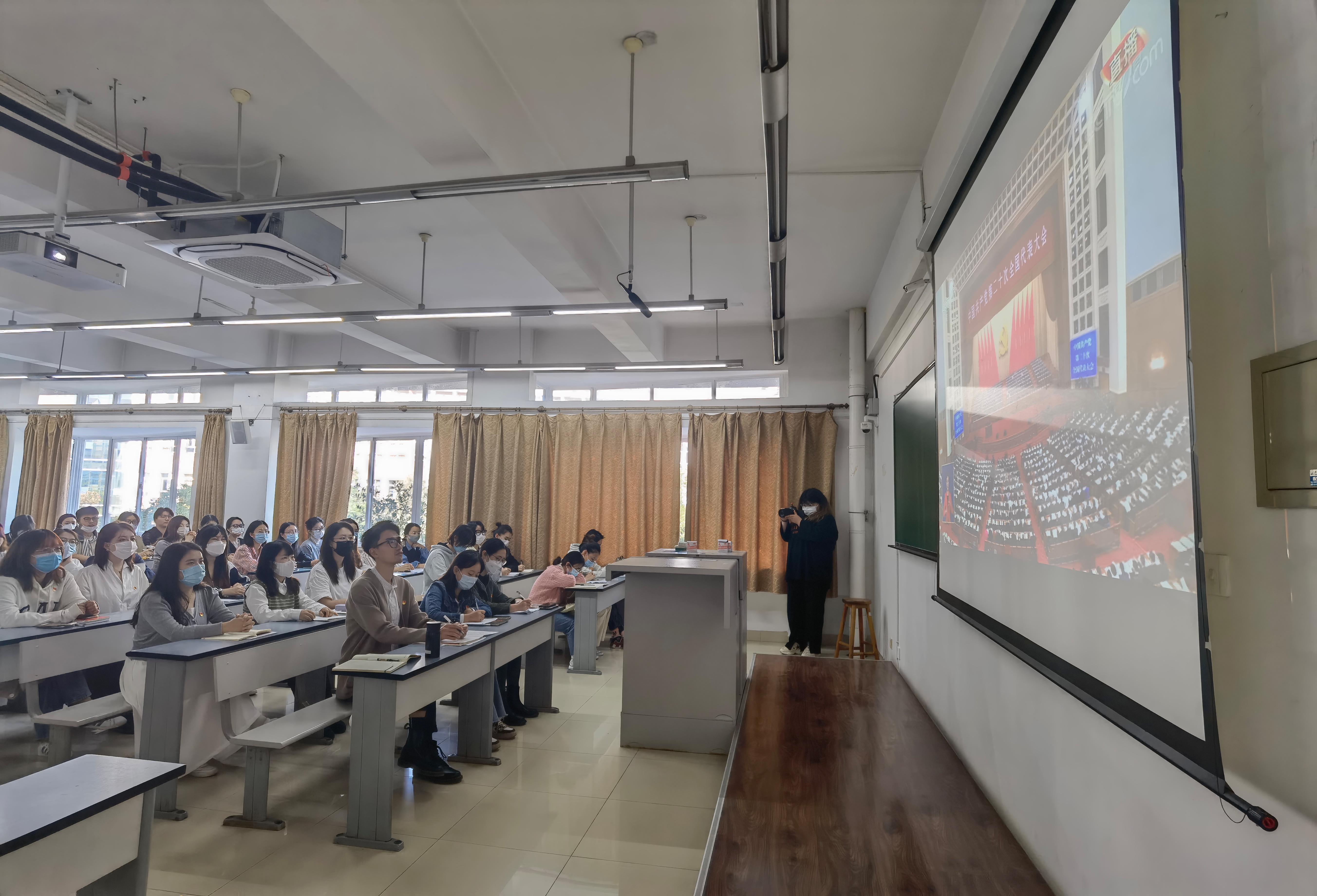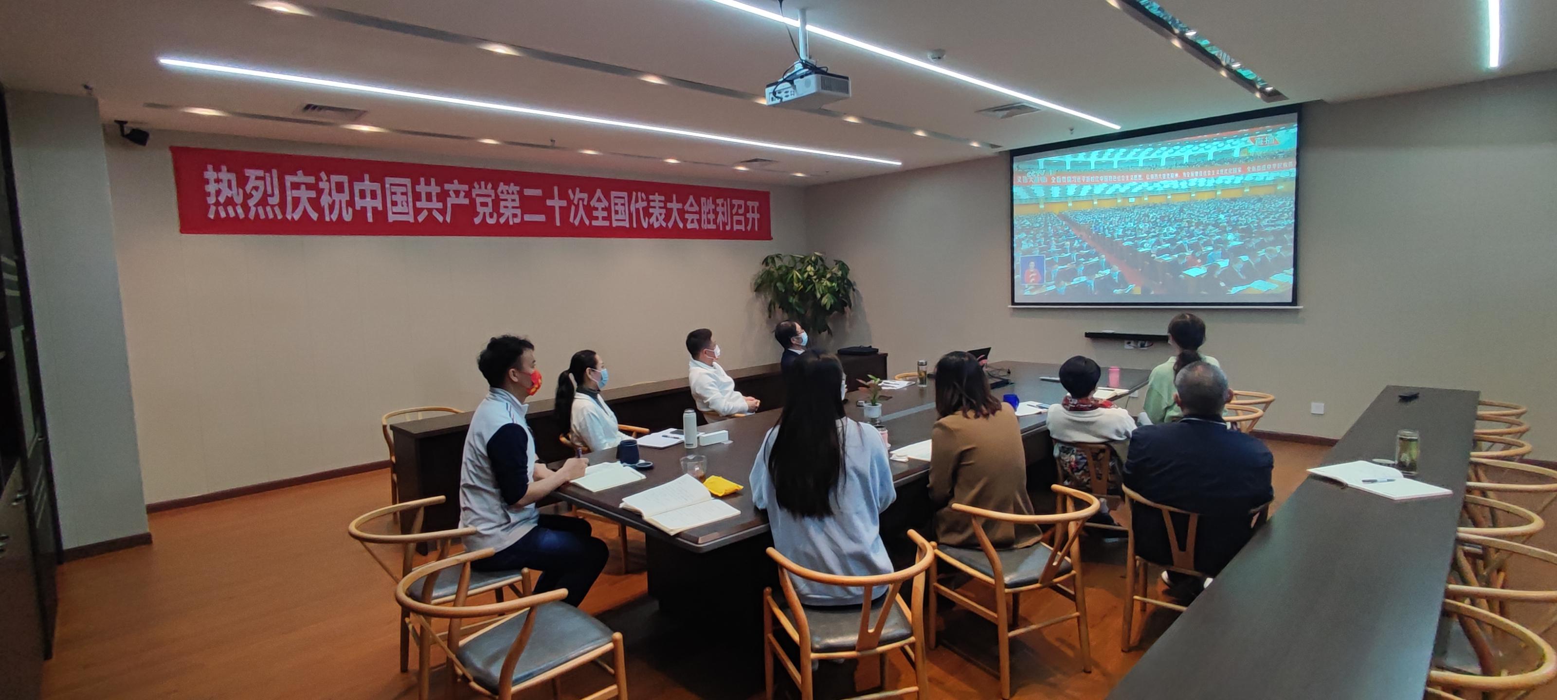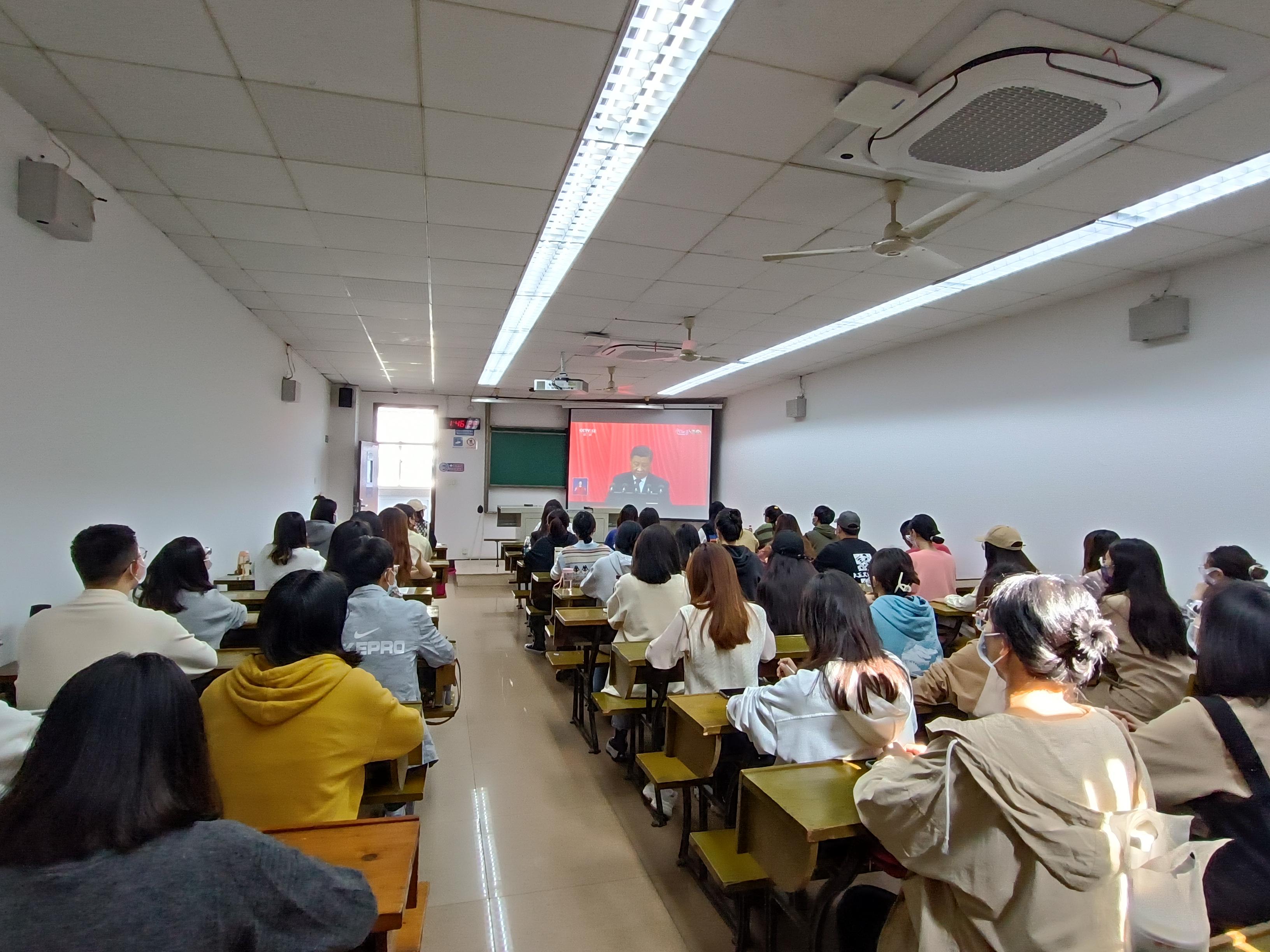 全体党员师生集中收看中国共产党第二十次全国代表大会实况直播,认真学习习近平总书记代表十九届中央委员会向大会所作的工作报告。师生做爱