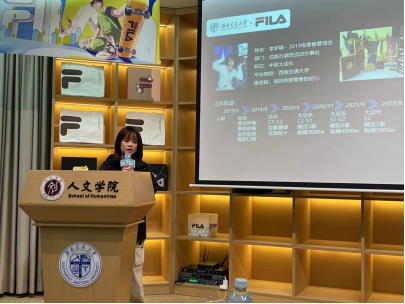 随后,FILA集团人力资源部副总监张政学向参会同学们介绍了FILA的品牌背景与品牌发展的前世今生。FILA中国加入安踏集团后,始终坚持品牌创新、产品创新和渠道创新这三大核心,最终成为行业领导者。同学们认真聆听张总的介绍,积极参与互动环节,对FILA品牌和集团的发展有了初步的了解与认识。