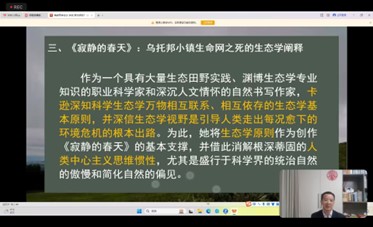 教授、博士生导师胡志红应邀出席此次会议,并作了题为《跨文明视野中的<寂静的春天>和<狼图腾>环境启示录书写:对话与互鉴》的大会发言,以跨文明、跨文化的视角号召新时代的民族自信与生态自觉,为人与自然生命共同体的构建贡献了生态学人的智慧和担当。此外,作为第四阶段的大会主持人,胡教授也对参会嘉宾的发言作出了独到精辟的总结。
