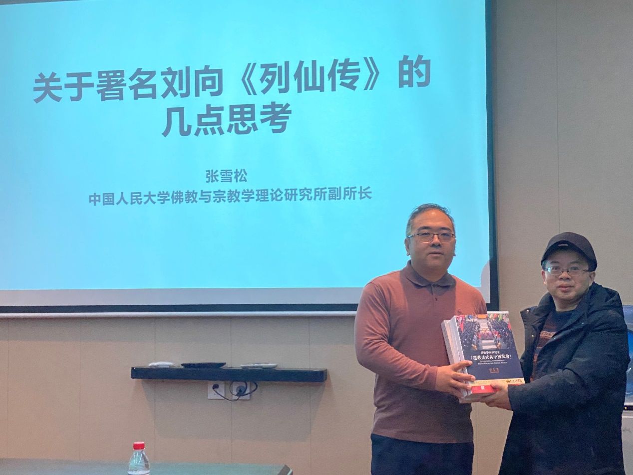 2023年11月24日周五10:00-12:00,中国人民大学佛教与宗教学理论研究所副所长张雪松老师应邀在犀浦校区3号教学楼X31004举行题为“关于署名刘向《列仙传》的几点思考”的学术讲座。这次讲座由师生做爱
