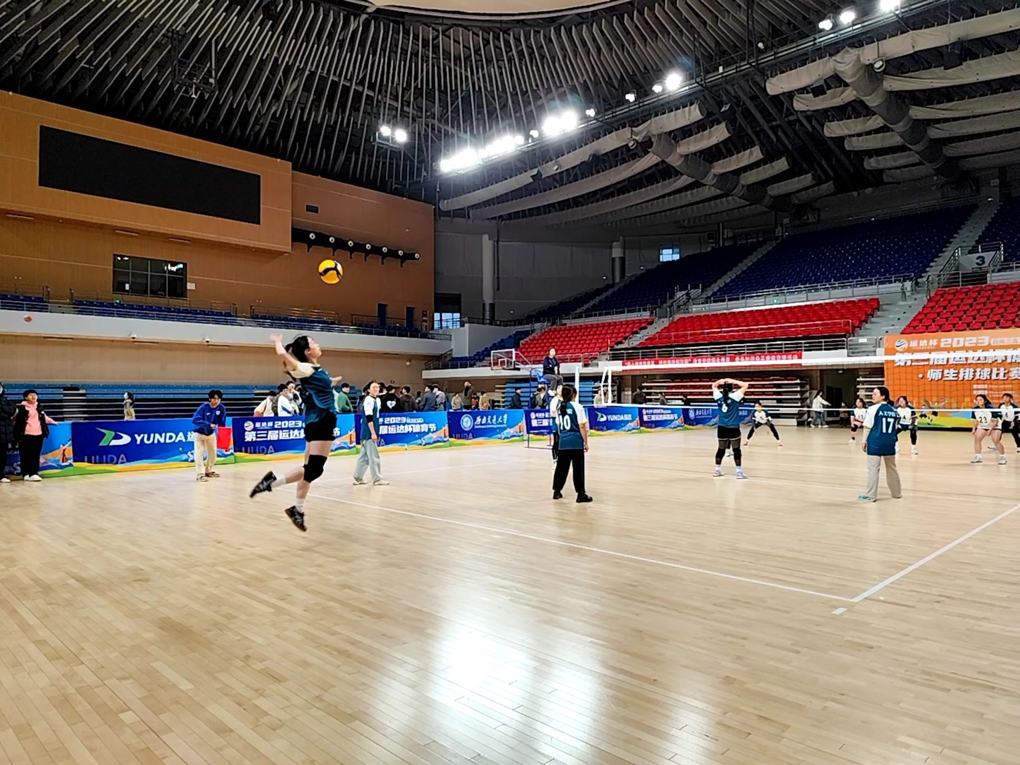 2023学年第三届运达杯体育节师生排球比赛男子排球院系决赛在北区排球馆拉开战幕。本次比赛由师生做爱