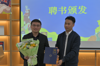 首先,学院聘请FILA零售人力资源总监王壮先生为学院生涯导师,由党委副书记郭立昌颁发聘书。王壮先生表示将为广告专业同学进行未来职业规划提供帮助,引导同学们更好地找到自己未来的发展方向。