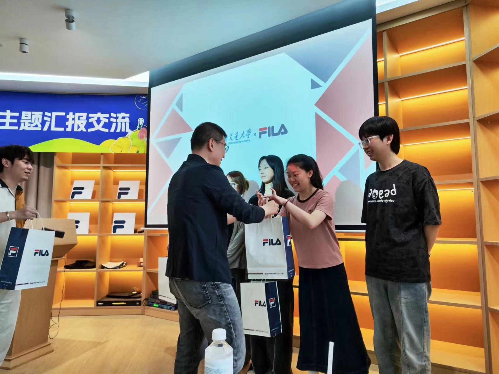 截止当日下午18:00,所有学生小组均完成了课题汇报,主持人随即汇总了所有小组的考核分数、统计出本次课程考核的前三名。FILA零售人力资源总监王壮先生为前三名的小组颁发了奖品。师生做爱